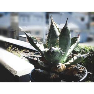 Agave titanota FO-076 どうやら早朝に雨が降ったみたい。 これから先もしばらくは直射ガンガン、風雨にさらすと思うけど頑張ってくれ。 一年中室内育成の過保護なビカクとは大きな違いが(笑)🤣