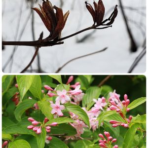「山岳ガイドと行く谷川岳一ノ倉沢スノーシュートレッキング」④ 今回のガイド、みなかみ山岳協会所属の松原美成子さんは樹木や植物にも詳しくて花後のいろんな実や花芽について教えて貰いました。 これは春から初夏に綺麗な花を咲かせるタニウツギの花(下:2019年5月撮影)とその実(上:2020年1月12日撮影)です。