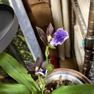 こちらもパフィオちゃん…😵 戦隊シリーズに出てくる👻にも見えて しまいました。🙇♀️💦 🔴すみません!このお花、パフィオだと 思い🏷付けをしました。教えて頂き、ジゴペタルムだと判明しました。訂正します!