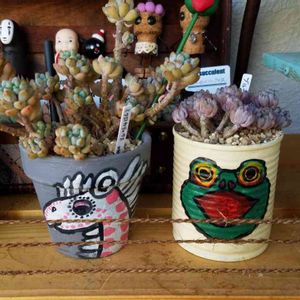 あやっちのリメ缶とリメ鉢❤️ サンタのリメ鉢あってクリスマス来るので週末に慌てて寄せ植え(笑) イベント事は食べる事がメインなお宅なもんで遅くなってごめんね😂 カエルと乙女心が似合うでしょ〜(*´∀`)♪ あやっち、ありがとう🎵 キモ缶タグ使うよ〜〜💕