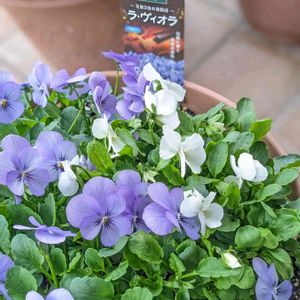 コメリのラ・ヴィオラ 30センチにブルー3株入れました。 ん? 1株ホワイト… ここからどうなるかな?