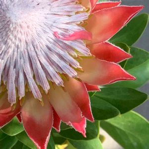 以前、蕾の状態でupしたことがある。 開きかけた この花に 又、出逢う事が出来た。 プロテア、リトルプリンス。 プロテアという名前は ギリシャ神話に登場する 変幻自在な海神「プロテウス」 が由来。 今まさに開こうとしているのは、 花びらではなく、総苞片。 総苞片とは花序(花の集まり)を 保護する苞葉のこと。 花持ちが良く、切り花としても、 ドライフラワーとしてもいいのですって。 華やか〜(*゚▽゚)ノ