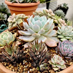 ラウリンゼを中心にアリモノで寄せて見たょー(~_~;) 太陽を待ってたけど、☔️予報に変わった ティテュバンス錦 ピンクチップス ラウリンゼ ピンクチップス ラウレンシス 12の巻 12の巻 花うらら