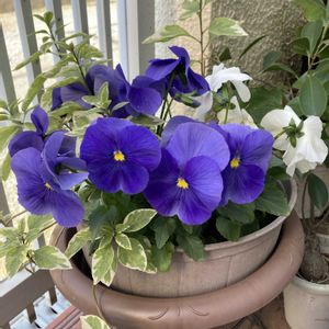 庭から 抜け出し色々な所で 気持ち良さげに咲くアリアケスミレ 4.5枚目は 2月から咲き続けてる ヒメヒオウギです