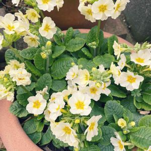こんにちは☀️ 数日前から花粉がヤバいです🤧 庭パトでもマスクしております💦 3年目のガーデンプリムラ アラカルトシュシュさん🌼 花茎が長めのタイプです。 1株だったのに毎年株分けして 今年は10株以上に 増えてくれました😆💛 この鉢に7株、もう1つの鉢に5株ほど 咲いてきています🎶 お庭を明るくしてくれるし コスパ良すぎな子です⁽⁽ଘ( ˊᵕˋ )ଓ⁾⁾ 甘い香りもあるのを忘れてました😅 今度クンクンしてみよ〜(*´˘`*)♡