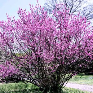 《 小石川植物園の春 》② 濃い赤紫の花で飾られた低木の木 ハナズオウ(花蘇芳) 小石川植物園の日本庭園から出入口に向かう途中で、遠くからでもこの花の存在がわかるほど艶やかです 春を飾る花として、人を惹きつけ、辺りを明るく染めています 花の由来は 花の色がマメ科の染料植物スオウで染めた蘇芳染(すおうぞめ)の汁の色に似ていることからつけられています (wikipedia) 地中海あたりが原産のセイヨウハナズオウは10mにもなる高木で、イスカリオテのユダが首を吊ったと言われることから、ユダの木と呼ばれています 園の木は、西洋ハナズオウとは異なります。 花言葉は 高貴・喜び・目覚め 豊かな生活 西洋ハナズオウには 裏切り・不信・疑惑