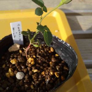 今年発芽したバラに蕾がつきました。交配はサマーソングの花粉をル・シエル・ブルーにつけました。