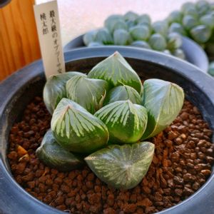 ハオルチア 日月潭の花。 花がついていないのは、交配したもの。 じつは、ガステリアと交雑させました。 実がふくらんできたから、成功か? 異属間交配うまくいくでしょうか? ご期待あれ。