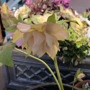 色が抜けて緑になってきた鉢植えピンクのひらひらクリローさん。 ちょうどシングルのブラックが咲いていたのでど素人なのに交配してみました🪴 一輪だけ種がつくまでとっておくつもりです♡