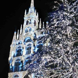 ハウステンボスのイルミネーション 手前の木はヒマラヤ杉です。シダーローズを拾ったことがあります。