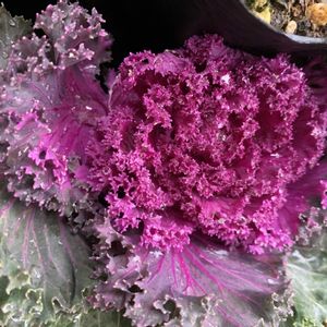 葉ボタン 二年前に寄せ植えした葉牡丹.。.:*♡ ヒョロヒョロ細長い先は、レトロ調に変わった小さな葉牡丹(*ˊ˘ˋ*)♪ 植えた時も良かったけれど、今の感じも良い感じ (*˘︶˘*).。.:*💕