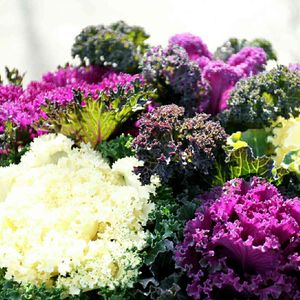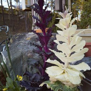 プリムラジュリアン ブラック葉牡丹 . ジュリアンの下から蕾がどんどんキテる💠 . 寒くてイマイチ咲くのが遅いけど、がんばれーー٩( 'ω' )و