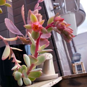 お家で1番元気な子☺️ お花が咲いてる!ベランダで寒いのに元気❄️ まだまだ伸びそうな感じ…笑 この子は元気だし綺麗って多肉の師匠にも褒められた〜💪🏻💓