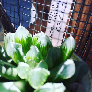 ハオルチアコレクション①🎵(初メルカリお買い物) 名札をつけてくれたので忘れないようにGSにメモメモ☝ 右下はシンビフォルミス。なんだか名前がつけられなかったよ😪