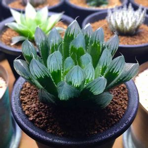 ハオルチア 朝日だけ当たるとこに置いていたけど透明感がなくなってきたので室内へ避難🏃🐤 猫が居るのでチキンネットかぶせてガード🐱😼
