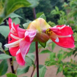 キュンキュン乙女倶楽部 令和熱い夏に参加します。 ダリアが😞💦 夕方に気付いてお水をたっぷり上げて見ました。夜中にもう一度見に行ったらやっぱり此のままだったので真ん中の薄皮をそっと剥がして上げました😊👌