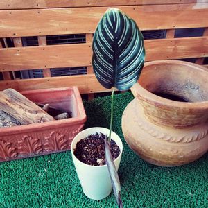おはようございます🙂 前に投稿したカラテア…名前が思い出せませんが 葉っぱの蕾が ずっーーとこの状態です💦 こんなに時間かかります?🤔