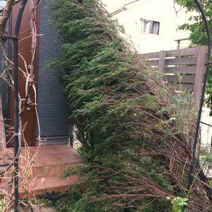 みなさん台風の被害は大丈夫でしたでしょうか💦我が家は玄関先のコニファー・スカイロケットが3本全部倒れてました😭 夫が仕事休みになったので、 なんとか復旧しました🌲