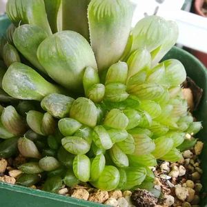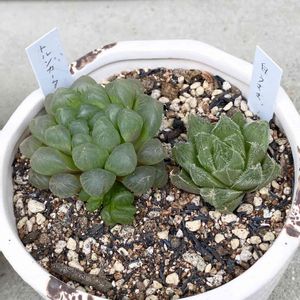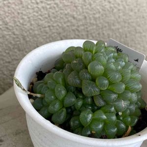 1年前に植えた時に、土を入れ過ぎて 埋まった状態だったので、掘り起こしたら 植えた時と同じぐらいの大きさで出て来ました😆💦 土を入れ替えて、2週間で 少し大きくなりました d(・ᴗ・ ´ ) 丸くなる種類ではなく、横にポコポコ増える種類だったと思いますが、ハオルチアの詳しい名前がわからないので、教えて下さい(。•ㅅ•。)♡