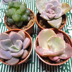 今日ビスタさんから届いたばかりの多肉さんたち🌱 プレゼントにハオさん&名前がわからない花芽のついたもの?をいただきました (^-^)/ 挿し芽をしたらいいのかな〜