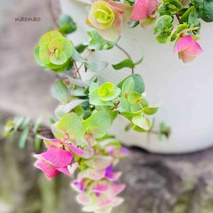 うちの庭で2度目の紅葉になるロフォミルタスマジックドラゴンです。常緑樹です。 🐲勇ましい名前ですが、寒くなると光沢のある小さな丸葉がこんな風にピンクになるんです💕 庭に花が咲いたようです❁ 下草は勢力絶賛拡大中のプリンセスクローバー🍀 心置きなく踏んだり剥がしたりして付き合ってます。よく見ると四つ葉が結構な確率でいます🤗