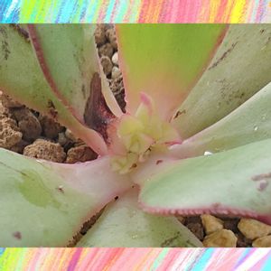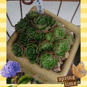 こんにちは✨😃❗ 摘芯チャレンジ㊥のアエオニウム夕映え(キウイ)です。前回から3週間ですねぇ🤤だいぶ目立ってきました。数も5つほど確認できました~😍