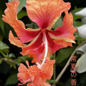 今日のハイビスカス🌺インドアハイビスカスサニーシティ🌺BF😊たぶん7輪目🤔癒されます😊 「インドアハイビスカス サニーシティ」 この品種は、その名の通り、室内での栽培に適したハイビスカスとして人気があります。 特徴 * 室内での開花が可能: 一般的なハイビスカスは強い日差しを好みますが、サニーシティは品種改良により、室内でも花を咲かせることができます。これは、特に日差しの少ない地域や、ベランダなど屋外スペースがない方にとっては大きなメリットです。 * 極めて多花性: 長い期間(通常4月〜9月頃)にわたってたくさんの花を咲かせます。 * 様々な花色: 赤、オレンジなど、カラフルな花色のミックスで流通していることが多いです。 * 北欧生まれ: 北欧で品種改良されたとされており、寒さにも比較的強い特性があります(ただし、耐寒性は弱いため、冬は室内での管理が必須です)。 育て方のポイント * 置き場所: * 室内向けとはいえ、明るい窓辺など、できるだけ日当たりの良い場所がおすすめです。日光にしっかり当てることで、花付きが良くなります。 * 夏の強い直射日光は避け、明るい日陰や、午前中だけ日が当たる場所に置くと良いでしょう。 * 冬は10℃以上を保てる暖かい場所に置き、暖房の風が直接当たらないように注意しましょう。 * 水やり: * 生育期の春〜秋は水をたくさん吸うので、土の表面が乾いたら鉢底から水が流れ出るまでたっぷりと与えます。特に夏場は朝晩2回必要な場合もあります。 * 水切れは蕾が落ちる原因になるため注意が必要です。 * 冬は水やりを控えめにし、乾燥気味に管理します。 * 肥料: 花付きを良くするために、生育期(春〜秋)には緩効性の置き肥を月に1回程度、または液体肥料を1週間〜10日に1回程度与えます。 * 植え替え: 生育が旺盛なので、毎年5月〜6月頃に植え替えを行うと良いでしょう。 * 病害虫: ハダニが発生しやすいので、風通しを良くし、葉の裏に霧吹きで水をかける葉水を行うと予防になります。 インドアハイビスカス サニーシティは、室内でトロピカルな雰囲気を楽しめる、育てやすいハイビスカスと言えます。適切な管理をすることで、長い期間美しい花を楽しむことができるでしょう。