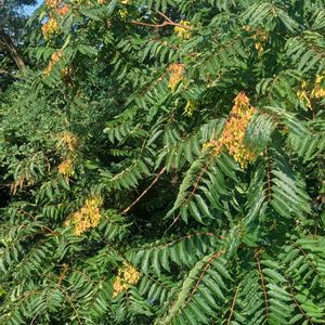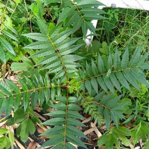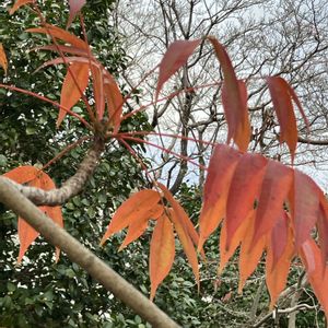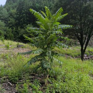 ニワウルシ〜♪葉っぱとかはカラス山椒にソックリ。ウルシに似てて庭に植えれるからニワウルシって名前らしいけど、見た目はカラス山椒の方が似てるといつも思う。 葉っぱ千切って匂いを嗅ぐと確かに香ばしい様な感じ。 幹はタラの木に似た白っぽい感じ。