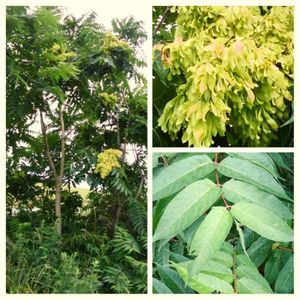 おはようございます😃 ウォーキングで出会ったお花たち いつも通る土手道の高い木に薄緑色の花? 調べてみると🧐🔍 ニワウルシの葉と花の写真がヒット❣️ これって6月9日に アカメガシワの雌花を探していた時 「ニワウルシ? ハゼ?」と投稿した植物と同じだわ! あの時もこの木に花が咲いていたかなあ? 気がつかなかった😅💦 でも名前が分かり嬉しい😘👏