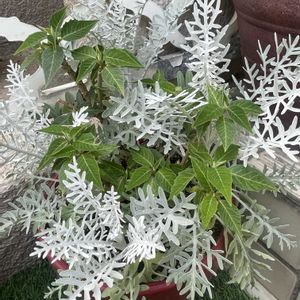 ポインセチアだめになりかけていましたが復活したみたいです。今年の冬は色つけれるといいな❣️確か白ですがෆ̈ 出先のシルバークレストを少し頂きさし木。根付いたようです💪🏻アザミみたいな花をつけると最近知りました。咲かせれるといいな。