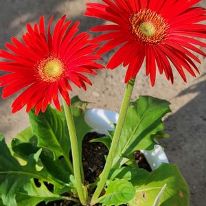 ガーベラ ① 花茎の長いガーベラをお招きしたら 次の花もちゃんと長くなって咲いてくれました ②③ いつも株元で花が咲きしかも花の形もいびつ でも今回は花茎が少し長くなって 形も何とか丸くなりました