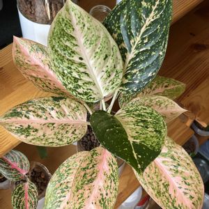 アグラオネマ・ピクタム・マルチカラー プラウニアス採取 [HT0819-01t] 昨年の幼株入手後、水苔栽培からハイドロカルチャーで管理している株です😊 管理環境は常温・常湿で通常の棚置きですが、今夏の猛暑にも負けず元気に成長しています。 2枚目に葉柄のアップ画像があります。 トリカラーもマルチカラーも色数の判断は微妙ですが、入手時のネームを尊重しております🤗