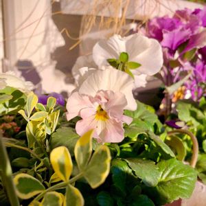 これは、寄せ植え作り中に、パンジーの花が折れちゃって🥲右側に可愛い黄色のフリフリの子がいたのですが😔咲いたらもっと可愛くなるはず!! この寄せ植えは、父プレゼント用