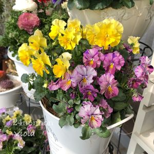 今日のパンジー&ビオラ🌸🌼🌿 💙ヨコハマセレクション・フレアーブルー 💗ビオラ・華あられ 💗ヨコハマセレクション・花まつり 💛ヨコハマセレクション・ティファニーイエロー 💜フリル咲きパンジー・シエルブリエ 💜🤍絵になるスミレ・ミュール&パルム お花が増えて来ました( ´͈ ᗨ `͈ )◞♡⃛ ココヤシファイバーを置いたので 水やりのタイミングがよく分からず 適当にあげてます😅