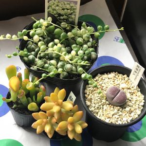 リトープスの紫李夫人✨ 名札は『サトーバイオレット』となっていました。 小さい株が3つ植えられている鉢を選びましたが、大きく育てられたら良いなぁ…😅