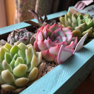 こんにちは(o´ω`o)ノ)) 日向にいるとポカポカ(*Ü*)ノ"☀ 手が痛いので何も出来ず ただ多肉を見てるだけ😅 ほんと鉢も持てないの😓 今日の1枚パシャッ! Σp[【◎】]ω・´) 昨日届いた多肉達❤ お菓子の詰め合わせみたい💖 食べ物に例えるな( ̄ー ̄)って言わないでね まだ根が出てないので このまま眺めてよう👀❤ ネットでポチした多肉がドンドン届く予定なんだけど~⤴️ 鉢制作が出来ないと言うオチ⤵️ 早く治れ~(>人<;)治ってくれ~(>人<;)