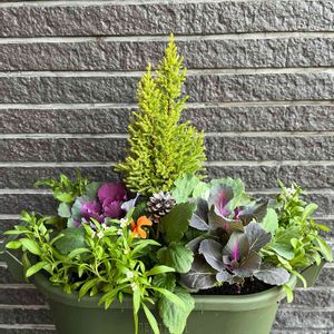 連投(>人<;) 葉牡丹寄せ植えNo.4 ゴールドクレスト入れてクリスマスバージョン🎄