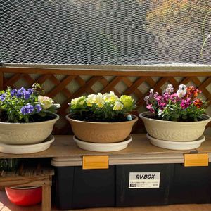寄せ植え♪ 実は、最初は、園芸店で寄せ植え用に葉牡丹や、スイートアリッサム、ビオラなどの苗を選んでいたんですけど、鉢付きの寄せ植えが目に入り、私が植えたい感じで割とお値打ちだったので、買って来てしまいました😅なので、自分で植えたものでは、ありません。
