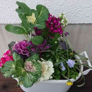 こんにちは🤗 今年最後の晴天? お布団干しました。 色々しないといけないことが、沢山有るのに。 今日1日ではやりきれないです。😆 葉牡丹寄せ植え No.26 昨年は苗を作れなかったので、今年は沢山寄せ植え出来て良かったです。🌸🌸 まだ少し苗が有りますが、これ以上作る時間が無いかも😅 皆様には沢山見ていただいて、有り難うございました。 自宅用のアレンジが出来たら、又見てくださいね。😊