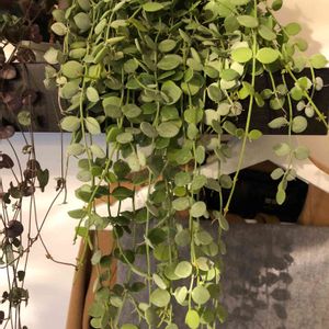 謎の植物 これも旦那さんが何か育てたい欲が出て買ってきたものです。 緑の太鼓とグリーンネックレスを足して2で割ったみたいなやつ。 旦那さんはどんどん伸びていくやつが好きなのか、アイビーも買ってました。 これ以上増えたら本当に場所がないので、これでもうストップ!笑