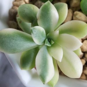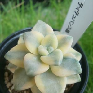 多肉もろもろ市場でお迎えした 🍀東美人錦さん🍀 ちょっとシワってたので3日前に底面給水したら、ん?真ん中から伸びてきちゃいました💦 でも綺麗な錦😍