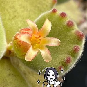 ᰔᩚ ᥫᩣ 熊童子 ベンケイソウ科コチレドン属 葉っぱはシワシワになっていたけれど花が咲いていました(*^^*) むじょかですねぇฅ(o‘ⓛ’o)ฅ 昨年の9月にも咲いていたようです 2回目の開花となりました 1年毎に咲くのかなぁ