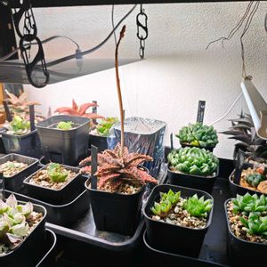 他の植物たち。 オテロイらしき株、ポタトラム、ブルーエンバーは 新葉も出てきて順調ではないかなと。 アロエhyb、デンティティも順調。 アリスタータはなぁ…どうしたものか… 謎サボテンはまだ未発根ぽいです。 ハオルチア達、こっちの環境のほうがあってるのかな。 ミュータントたちは部分的に枯れたり しているので、もう少し様子を見てこちらに移動かも。