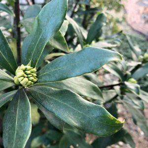 毎年白い花を見せてくれる沈丁花緑の葉っぱなんだけど 色があせてます。