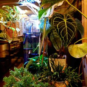 ブクブクブクブク… 我が家の加湿器。笑 アカヒレ、ベタ♀、イシマキガイ、 ヤマトヌマエビ 仲良く共生しています♪