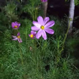 夜道で出会ったコスモス (個人宅の庭ではございません) スマホライトなしで撮影! 画像加工もなし! 街灯のみでこんなにピンクがしっかりとわかるのすごくないですか😄