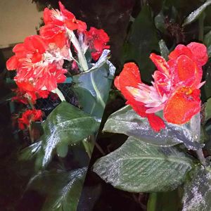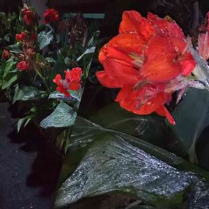 今日のお花🌸ポインセチア❤️ 昨年のクリスマス🎄🧑🎄に撮った写真です。 お部屋で育てていますが寒いのに 中庭(外)に持っていって撮りました🤳 ここで撮るの好きなんです😊 夜の撮影です🌠 クリーム色と赤色…どっちもきれいです✨