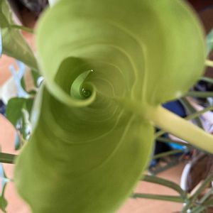 おはようございます。 モンステラ モン助くんの新葉ちゃんぐるぐるです🌀👀 今日もがんばりましょうね☀️ モン助くんも応援しています🫥🌿