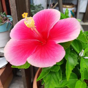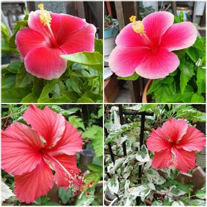 ハイビスカス🌺 家の花と 実家のハイビスカス🌺 実家は葉がふいりで 綺麗な葉です