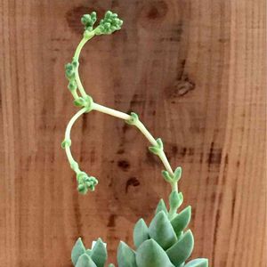 もらった時すでに激しく徒長した謎の多肉です! 夏の太陽から生き延(伸)びた強い多肉です!